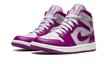 The Women’s Air Jordan 1 Mid “Magenta” is a women’s-exclusive colorway of the popular mid-top silhouette from Jordan Brand’s Spring 2022 lineup. The “Magenta” borrows inspiration from the two-tone appearance of many classic Nike Dunk colorways, as it features violet and magenta color combination on its panels. Specifically, the perforated toe, mid-panel, and collar are designed in light purple leather. The toe cap, forefoot, eyelets, heel, and Swoosh appear in magenta leather. The dark purple hue also appears on the “Wings” logo on the collar, and on the Jumpman and “Air” branding on the tongue tag. The shoe is finished off with a white midsole and magenta rubber outsole.
