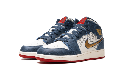 The Air Jordan 1 Mid SE Nylon is a remixed version of the Air Jordan 1 Mid design. Neutral palettes on Air Jordan 1 models let the sneaker’s classic silhouette do the talking, and the same can be said with this Air Jordan 1 Mid SE. Reminiscent of the Aleali May Air Jordan 1 released in 2017, the Air Jordan 1 Mid SE “Nylon” relies heavily on Oakland Raiders-esque vibes, and features a silver nylon material on the toe, Swoosh logo, and collar. Black nubuck overlays, laces, and tongue further adds to the shadowy appeal of the sneaker. The Air Jordan 1 Mid SE “Nylon” released Summer 2019.
