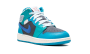 The Air Jordan 1 Mid GS “Inspired by the Greatest” is the youth sizing of the casual shoe in a colorway inspired by Michael Jordan’s career accomplishments. The Jordan 1 Mid “Inspired by the Greatest” is a kids-exclusive colorway, and features an interesting combination of colors and materials on its design. The upper is complete with a black mesh base contrasted with Glacier Blue and Aquatone leather panels. Blue velcro Swooshes are attached to the sides of the shoe, and classic “Wings” branding appears on the collar. An “Inspired by the Greatest” logo can be found on the tongue tag