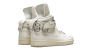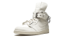 The COMME des Garçons x Air Jordan 1 High is the storied fashion label’s take on the iconic Air Jordan 1. Following a number of high-profile collaborations with Nike throughout the years, CDG teamed with Jordan Brand for the first time in 2019 for this distinct makeover of the legendary silhouette in two colorways. At home on the runway or streets, this model is constructed with premium monochromatic white leather and silver hardware including clasps and rivets. Detailing unique to the CDG release include an elongated tongue, a buckle reminiscent of those that can be found on motorcycle boots, and silver O-rings inspired by punk and goth aesthetics. Release date: Fall 2019.