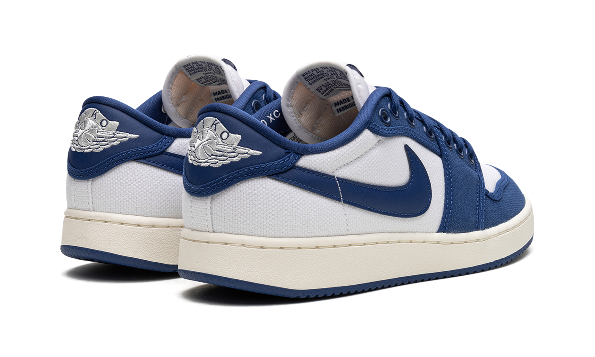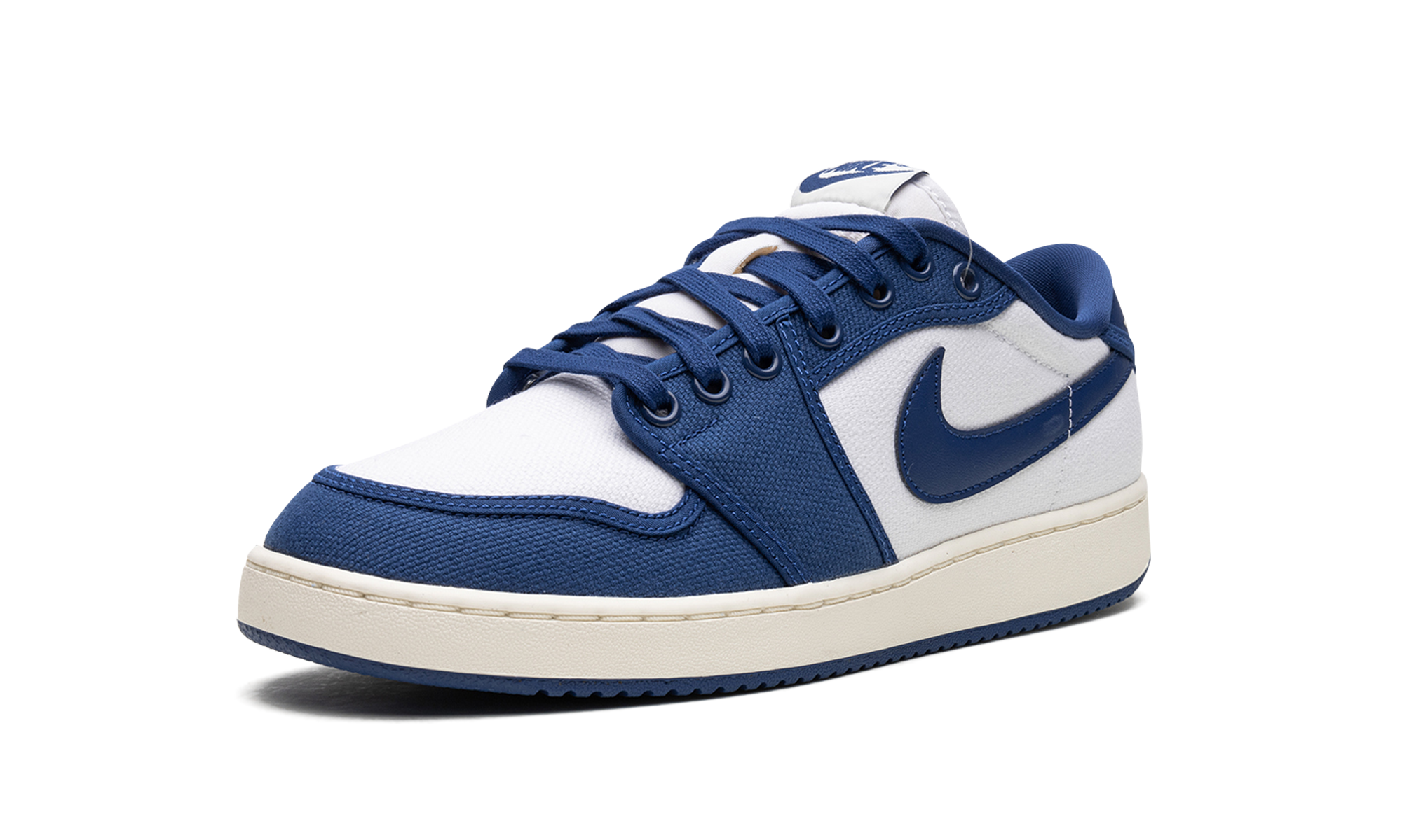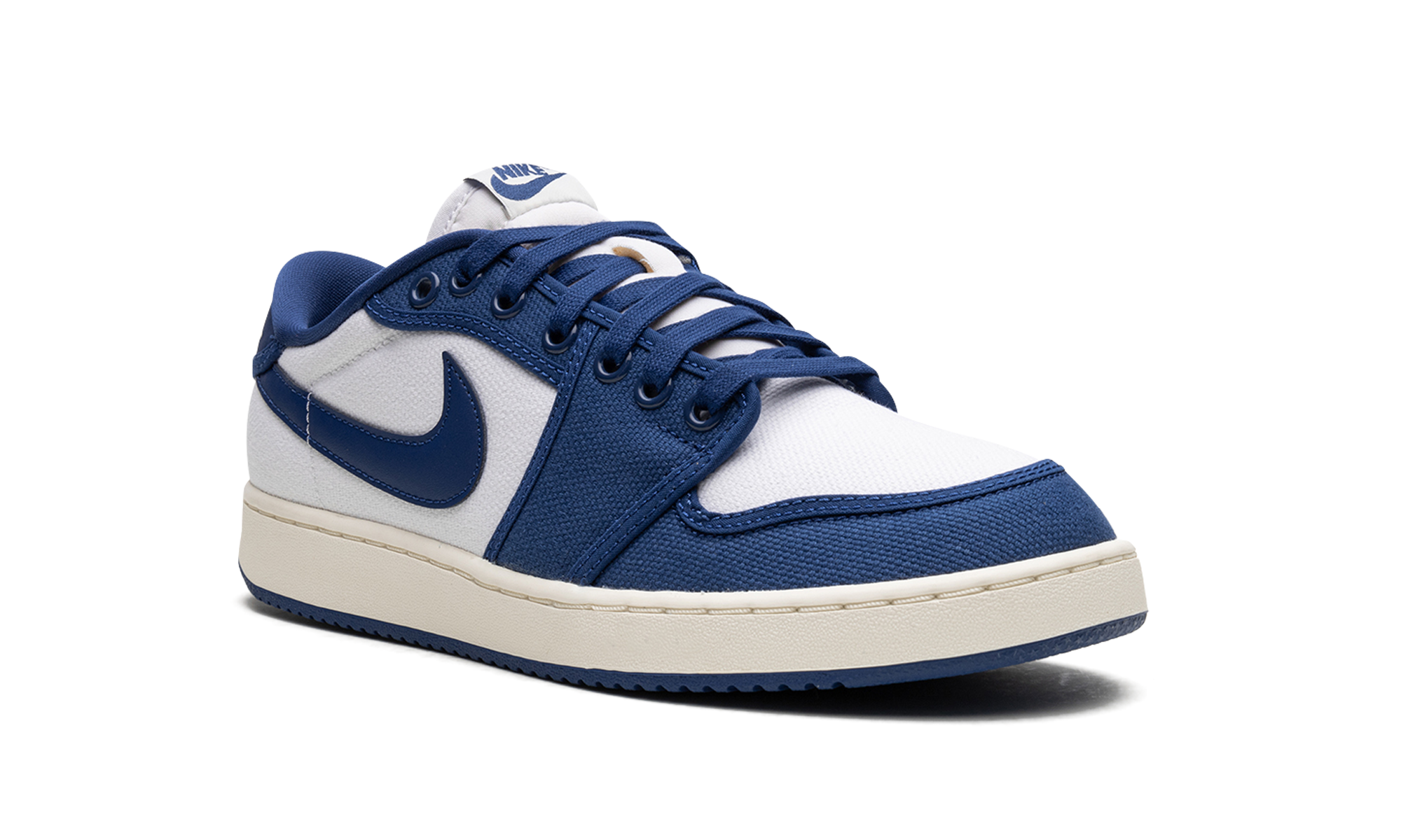 The Air Jordan 1 KO Low “Kentucky” is a colorway of the low-top version of the retro sneaker that is unofficially inspired by the Kentucky Wildcats college basketball team. The Jordan 1 Low KO was introduced as part of a collaboration with Union and, soon thereafter, was released in colorways such as the “Kentucky.” While not associated with the University of Kentucky, the colorway nonetheless features the Wildcats’ team uniform colors on its design. The shoe has a white canvas base with Royal Blue canvas overlays and a Royal Blue leather Swoosh. A white “Wings” style “AJKO” logo appears on the heel and a blue “Nike” logo is found on the tongue. The Jordan 1 KO Low rides on the same midsole as the Nike Vandal, and is designed in a vintage-inspired cream hue here. Release date: April 20, 2023