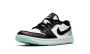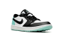The Air Jordan 1 Low Golf “Copa” is a version of the classic basketball shoe designed for golf. The “Copa” is one of several colorways of the Jordan 1 that have been redesigned for the fairway by Jordan Brand. Other popular styles include the Jordan 1 Low Golf “Shadow,” “Wolf Grey,” and the “Chicago.” The “Copa” features a white leather base contrasted with black leather overlays on the toe cap, forefoot, eyelets, and Swoosh branding. Cop, or aqua, leather is found on the heel. Small nubs on the outsole provide traction on a golf course. Release date: June 29, 2022
