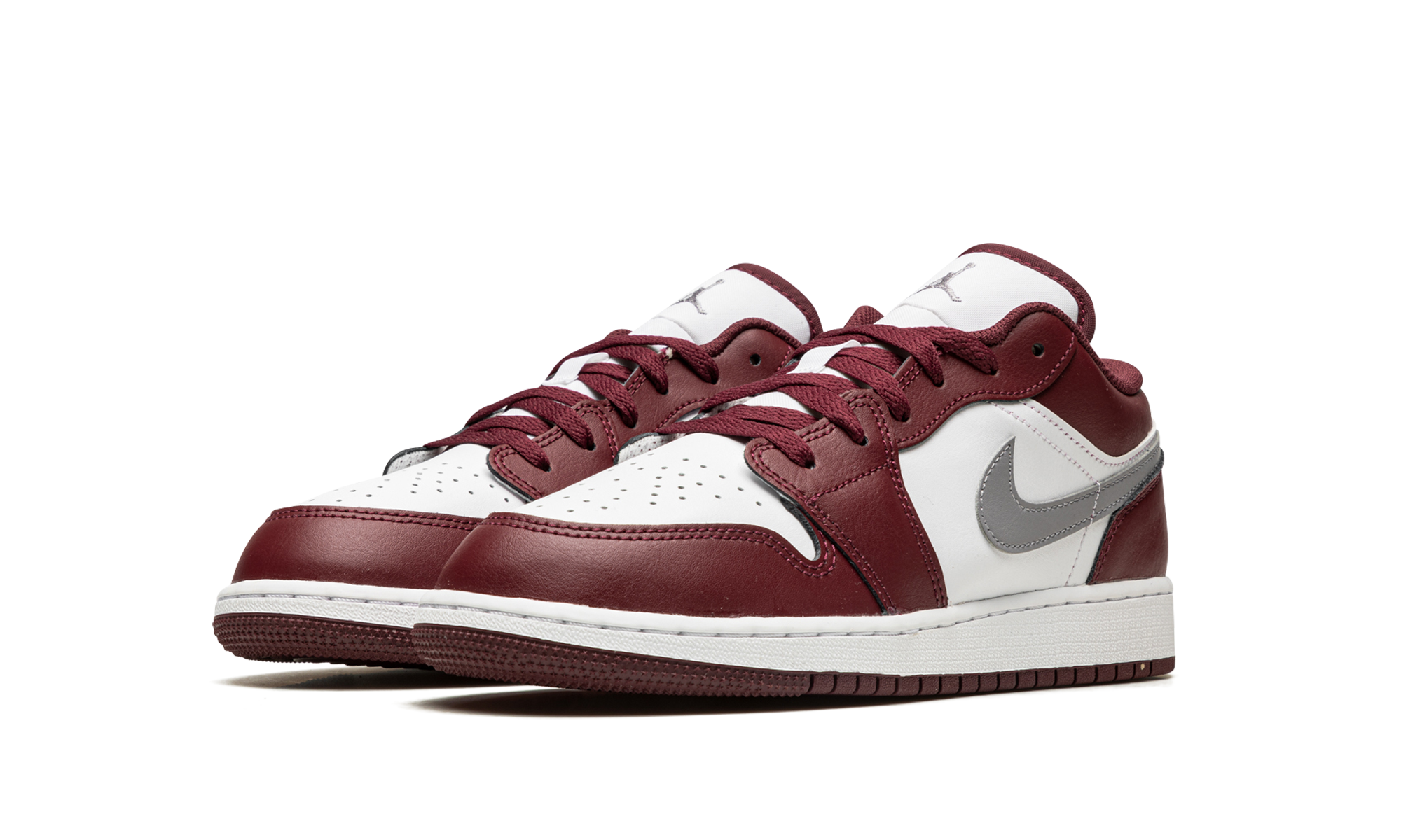 The Air Jordan 1 Low GS “Bordeaux” is the youth sizing of the colorway of the same nickname that was originally released on the Air Jordan 1 High OG in 2021. Like that shoe, the Jordan 1 Low “Bordeaux” features maroon leather overlays and a white leather base. A Metallic Silver leather Swoosh logo is found on both sides of the shoe. Classic silver “Wings” branding is embroidered on the heel and a silver Jumpman is stitched onto the white nylon tongue. A white rubber midsole and Bordeaux outsole complete the look.