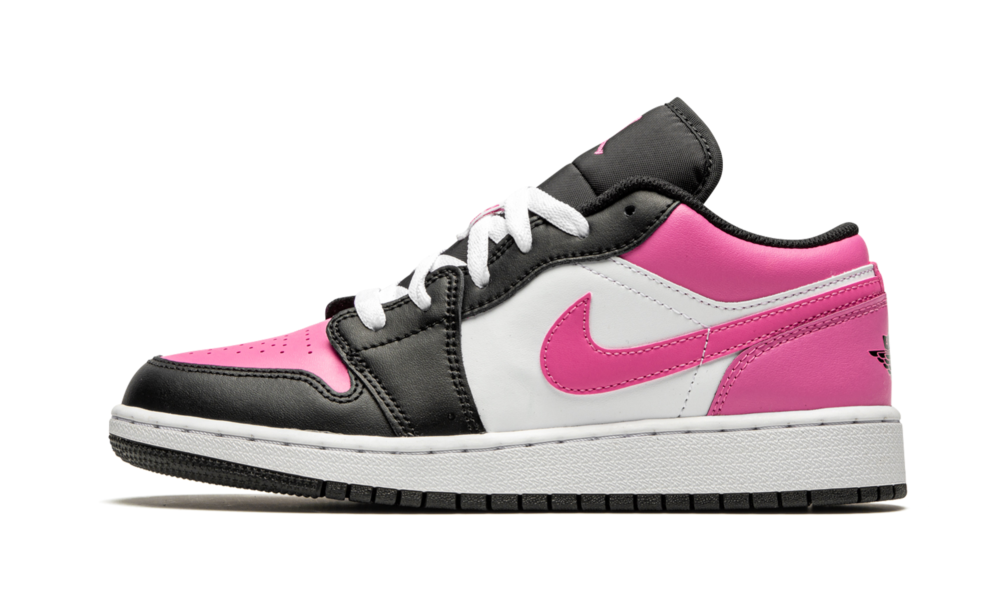 The Air Jordan 1 Low GS “Pinksicle” is Michael Jordan’s first signature shoe in an appealing colorway for children. The Air Jordan 1 Low has settled into its place as one of the most popular Jordan Brand silhouettes over time. This easy-on-the-eyes “Pinksicle” colorway features soothing Pinksicle leather accenting on the perforated toe, collar, heel, and Swoosh branding on the white leather mid-panel. Contrasting black “Wings” detailing can be found on the heel. Embroidered pink “23” and Jumpman branding dot the lace stay and black nylon tongue, respectively. White laces finish off the look of the “Pinksicle” Jordan 1 Low for kids.