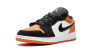 The Air Jordan 1 Low GS “Shattered Backboard” is the youth sizing of the popular colorway of the timeless Air Jordan 1 silhouette in low-top form. Released in 2015, the “Shattered Backboard” colorway of the Air Jordan 1 features an impressive backstory; in 1985, Michael Jordan, then a rookie with the Chicago Bulls, broke the backboard following a powerful dunk in an overseas exhibition game. The clean orange and black makeup proved to be a winning combination on the silhouette and Jordan Brand continued to play on the theme for this low-top iteration in 2019. The upper consists of a Starfish leather toe with black nubuck overlays. A white tumbled leather mid-panel features a black leather Swoosh while an orange heel completes the look of the upper. Below, a white rubber base and orange outsole put the finishing touches on the design. The grade school sizing of the Air Jordan 1 Low “Shattered Backboard” was released Summer 2019.