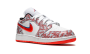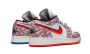 The Air Jordan 1 Low SE GS “Take Flight” is a youth version of Michael Jordan’s first signature shoe in a 3-D glasses inspired colorway. White leather detailing can be found on the perforated toe and mid-panel. Panels with all-over “Take Flight” insignia on the forefoot, eyelets, collar, and heel stand out in contrast to the crisp white base. Jordan Brand places layered two-tone Swooshes on either side of the shoe and a 3-D inspired Jumpman on the tongue. A black “Wings” graphic is printed on the heel. A white midsole and blue and red outsoles on the left and right shoe, respectively, round out the look of the Air Jordan 1 Low SE GS “Take Flight.”