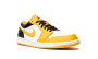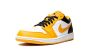 The Air Jordan 1 Low “Taxi” is a black, white, and yellow colorway of Michael Jordan’s first signature shoe in its low-top silhouette. The “Taxi” was released in September 2022 and attracts attention with a striking combination of yellow and black accents throughout its design. The perforated toe and mid-panel feature a white leather construction. Taxi-colored leather appears on the toe cap, forefoot, eyelets, and Swoosh. A yellow “Wings” logo dots the heel and a black Jumpman is embroidered on the yellow nylon tongue. Black laces, a white midsole, and yellow rubber outsole put the finishing touches on this eye-catching Air Jordan 1 Low. Release date: September 17, 2022