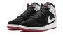 The Air Jordan 1 Mid grade school shoe is the exact replica of the adult’s “Johnny Kilroy” model. Black nubuck comprises the perforated toe, mid-panel, and ankle collar giving the shoe a sleek appearance. Toward the back of the upper is a metallic silver leather Swoosh on the mid-panel with the material repeating on the lateral panel and heel. A contrasting red Wings logo covers the collar and a red-based Jumpman logo appears on the tongue. Keeping things simple, a classic white rubber midsole and red outsole finish off the look of this Air Jordan 1 Mid.