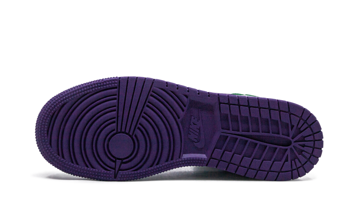 The Air Jordan 1 Mid “Hulk” is the grade-school version of the adult silhouette inspired by the Marvel monster known as The Incredible Hulk. Employing a color scheme that represents the destructive character, the white leather upper features vibrant green leather overlays covering the forefoot, collar, and heel. A clean white leather base appears on the mid-panel and perforated toe. Purple accenting covers the Nike Swoosh, as well as the padded collar. Purple Wings detailing on the collar and Jumpman branding on the green nylon tongue tab complete the look.