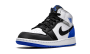 The Air Jordan 1 Mid GS “Royal/White” is another example of Michael Jordan’s first signature shoe designed for kids in a fun colorway. This “Royal/White” look pulls inspiration from classic Jordan 1 designs for a new and unique appearance. Black tumbled leather detailing on the forefoot, toe cap, and eyelets stands out against the white perforated leather toe and smooth white leather mid-panel. Additional white leather appears on the collar overlay. A classic black leather Swoosh graces either side of the shoe. Additional branding, such as black “Wings” detailing on the collar, and white Jumpman on the tongue tab, give this shoe a timeless vibe. A Royal panel on the lower heel adds contrasting to the white rubber midsole.