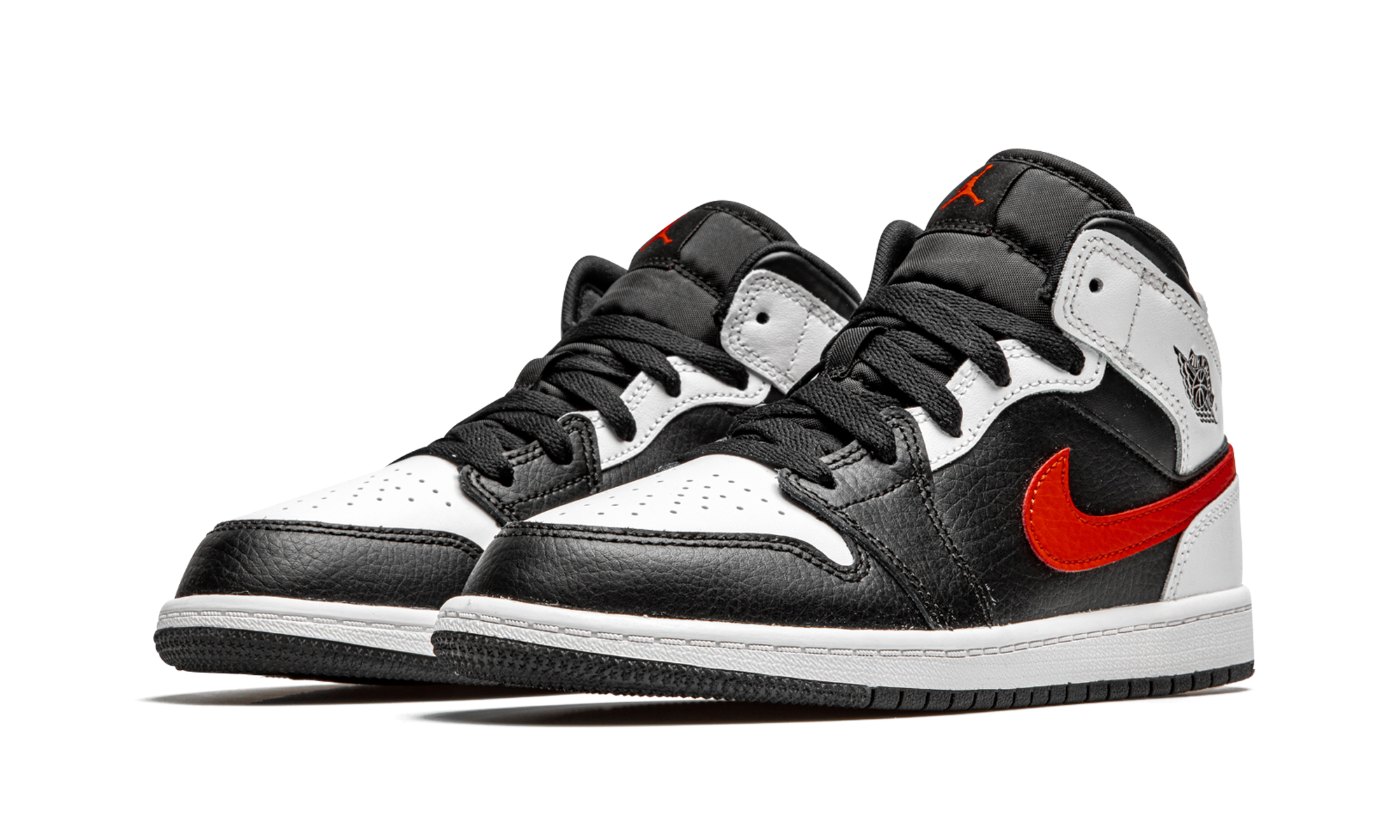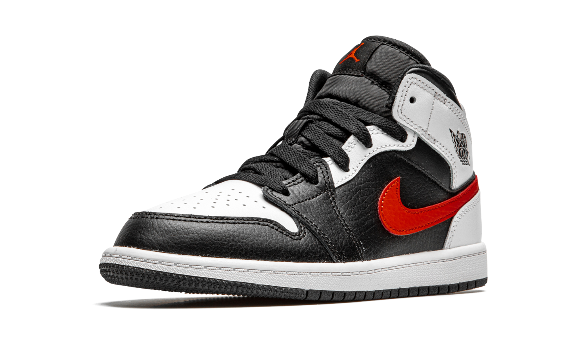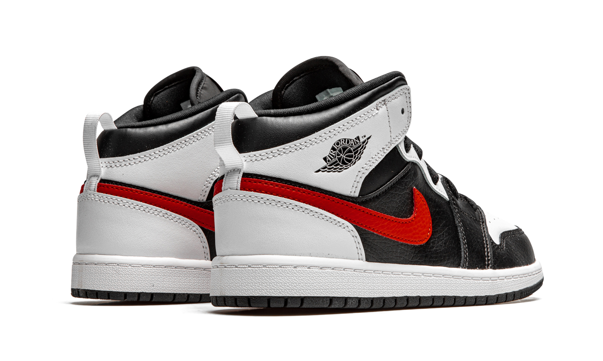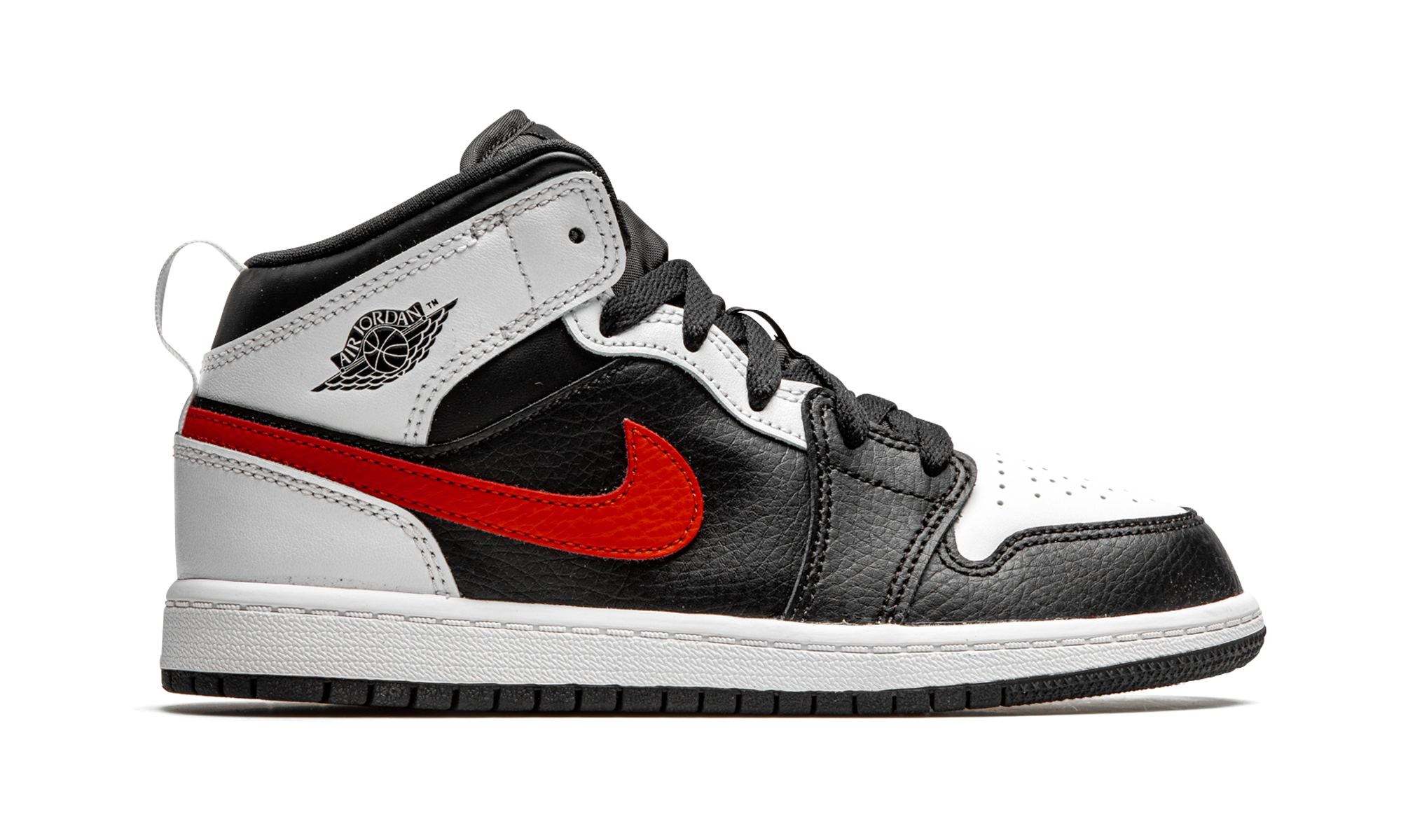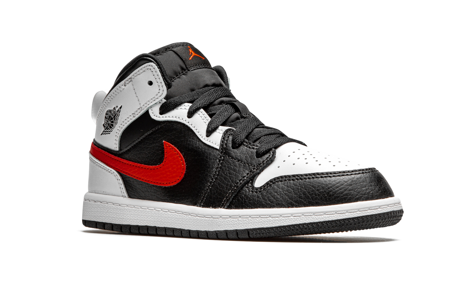 The Air Jordan 1 Mid PS “Chile Red” is the preschool sizing of Michael Jordan’s first signature shoe in a Chicago Bulls inspired colorway. The NBA franchise’s familiar red, black, and white team uniform colors adorn the “Chile Red” in an intriguing way, beginning with black tumbled leather appearing on the mid-panel, forefoot, lower eyestay, and collar. From there, white leather adorns the perforated toe, upper eyelets, collar, and heel. Branding appears in the form of a bold Chile Red leather Swoosh on either side and a white “Wings” logo on the collar. Additionally, a small red Jumpman insignia can be found on the top of the black nylon tongue. Jordan Brand opts for a clean design underfoot by pairing the white rubber midsole with a black outsole.