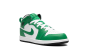 The Air Jordan 1 Mid PS “Lucky Green” is the preschool sizing for the colorway of the casual shoe that nods to the Boston Celtics. While not officially tied to the Celtics, the “Lucky Green” still features the basketball team’s white-and-green team uniform colors on its design. The shoe is complete with a white leather base with Lucky Green leather overlays. A green leather Swoosh can be found on either side of the shoe and a black “Wings” logo appears on the collar. Additional branding includes a black Jumpman and an “Air” logo on the green tongue tag.