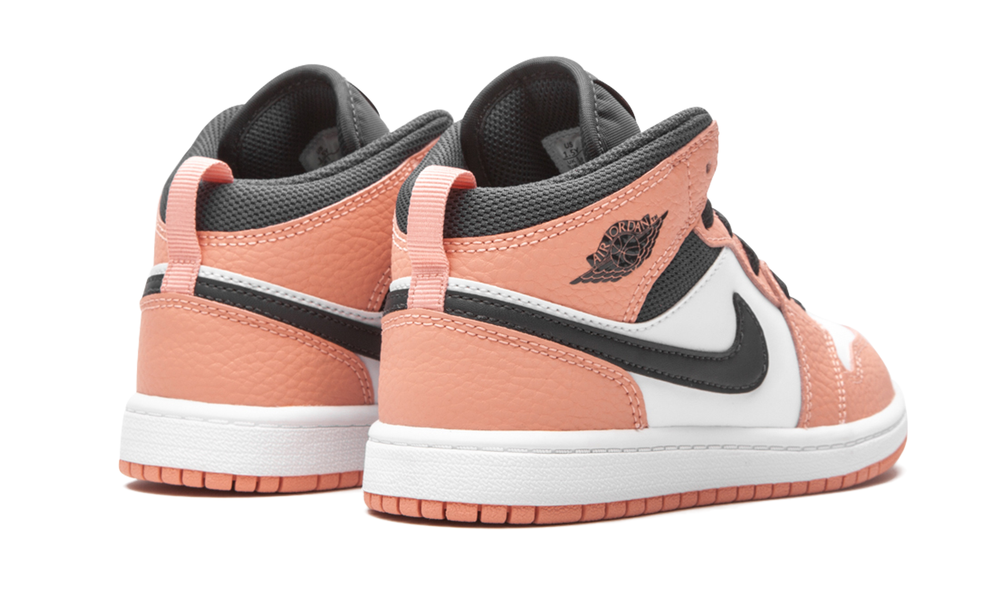 The Air Jordan 1 Mid PS “Pink Quartz” is a warm and vibrant colorway of Michael Jordan’s first signature shoe in its mid-top silhouette. A children’s exclusive makeup, the “Pink Quartz” is one of the many modern takes on the Air Jordan 1 Mid produced by Jordan Brand since the model’s rise in popularity in the late 2010s. Smooth white leather appears on the perforated toe and on the mid-panel. Contrasting Pink Quartz tumbled leather panels on the forefoot, eyelets, collar, and heel break up the look and evoke a summertime vibe. A black leather Swoosh appears on both sides and a black “Wings” logo on the collar. The black nylon tongue tag displays a small pink Jumpman logo. The Pink Quartz nylon pull loop on the heel provides functionality, assisting on/off wearability.