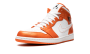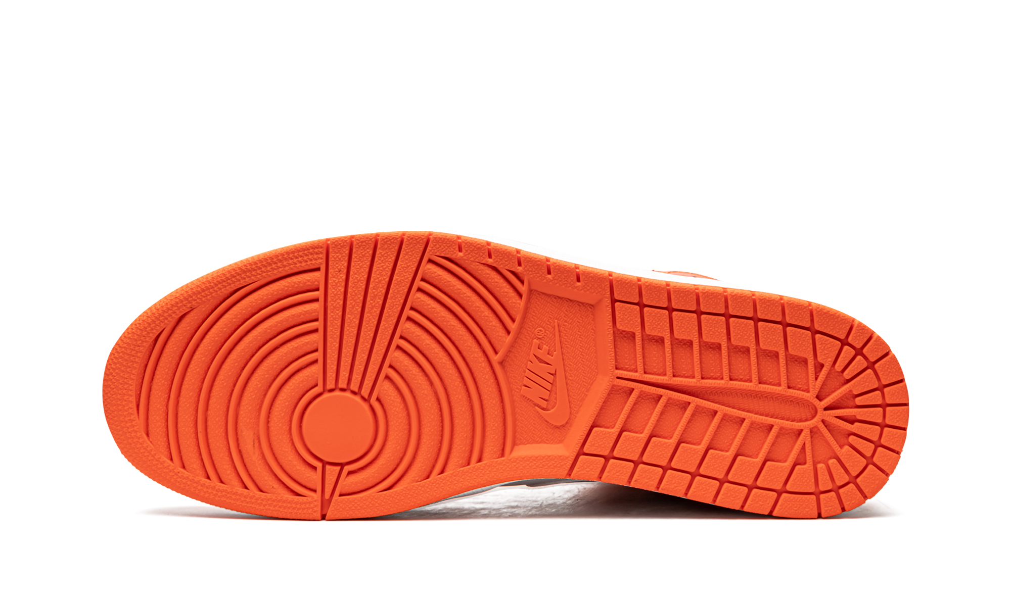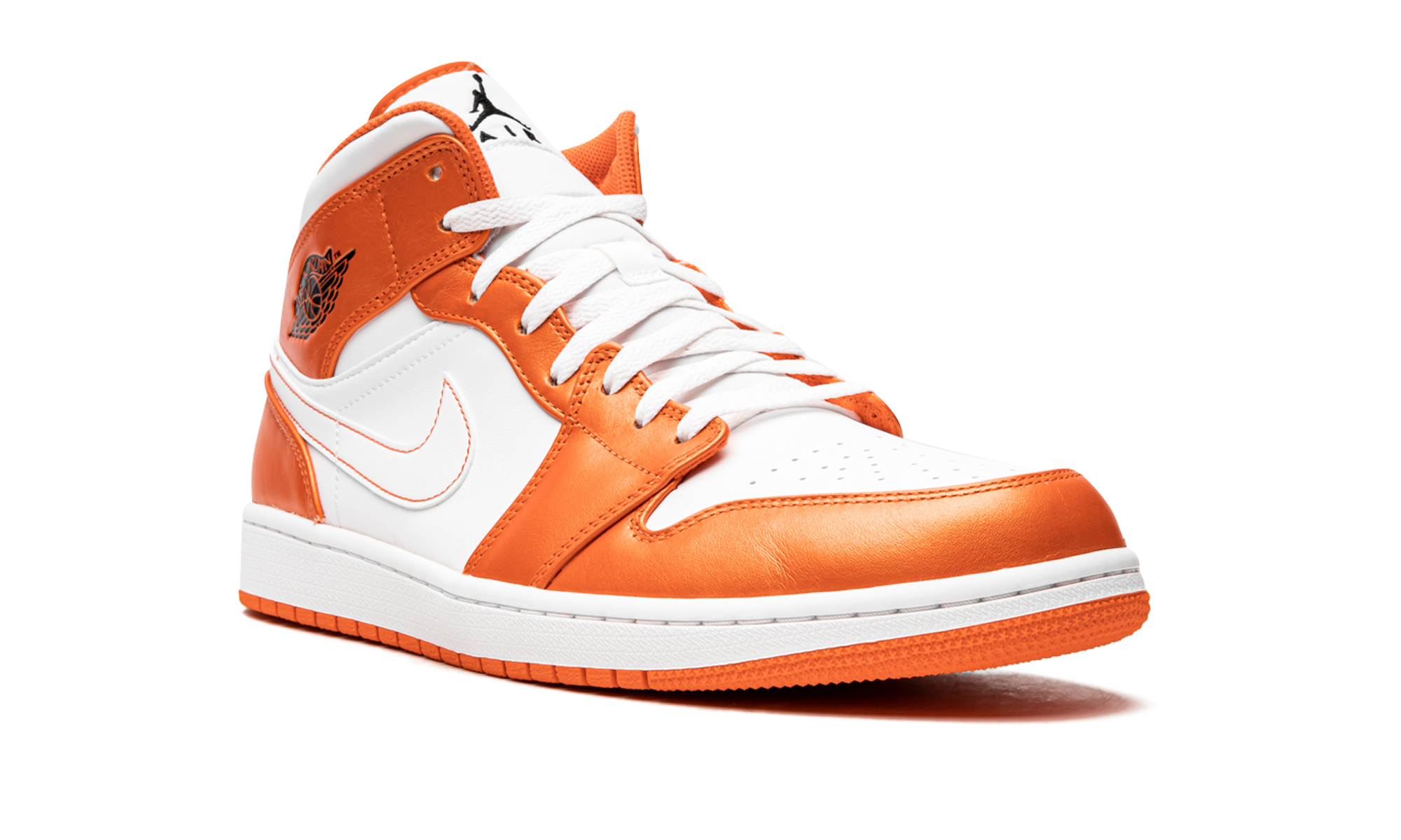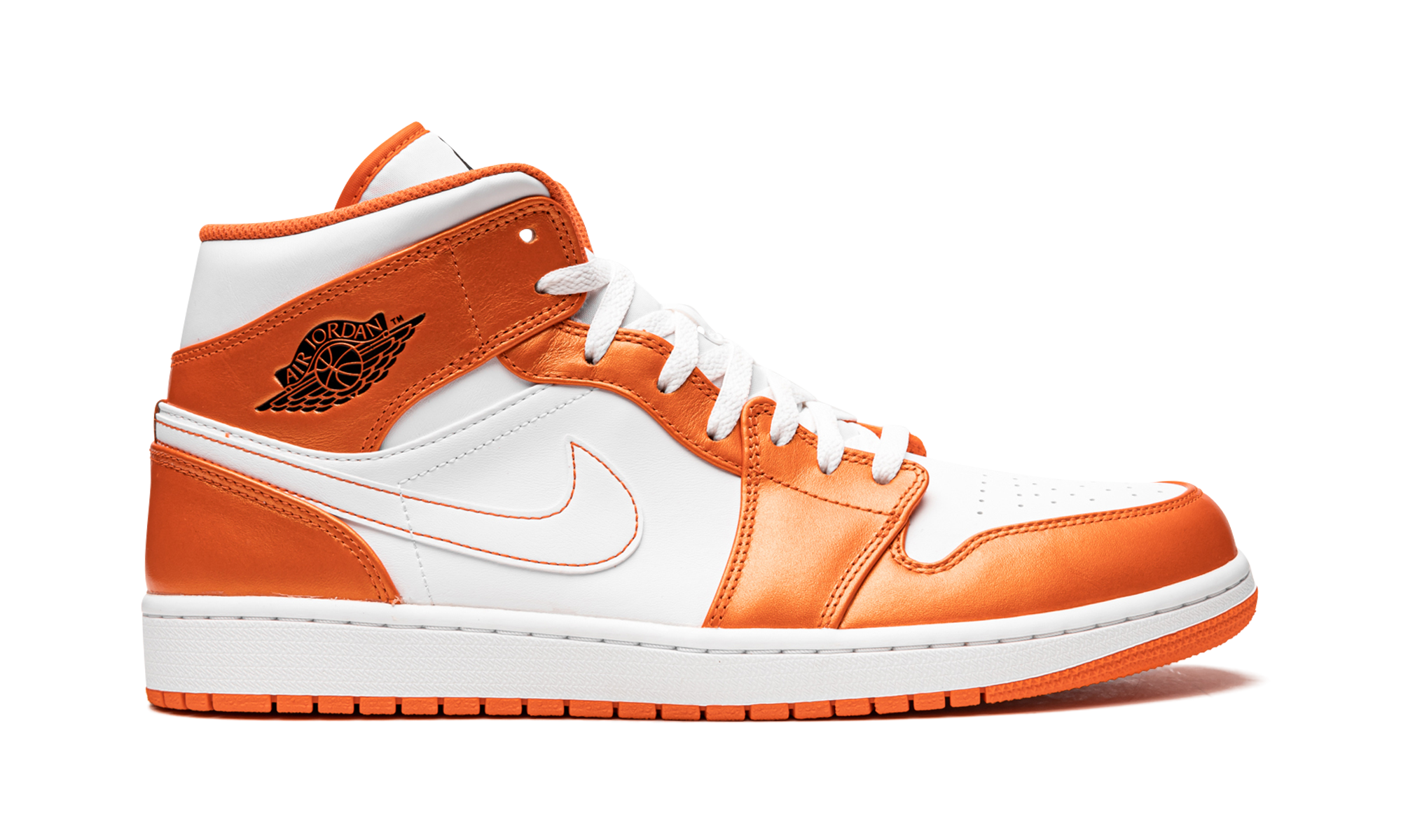 The Air Jordan 1 Mid SE “Electro Orange” is a bold colorway of the mid-top version of Michael Jordan’s first signature shoe. Despite never appearing on Michael’s feet during his time in the NBA (the Air Jordan 1 Mid debuted in the mid-2000s after he had retired from basketball), the mid-top silhouette is one of the more popular Air Jordans in Jordan’s collection, and it’s easy to see why on the “Electro Orange.” The white-and-orange color block brings to mind the classic Nike Dunk “Syracuse” from the “Be True to Your School” pack from 1985. On the “Electro Orange,” white leather appears on the perforated toe, mid-panel, collar, and Swoosh. Contrasting glossy Electro Orange leather can be found on the various overlays on the upper. A black “Wings” logo resides on the collar and a black Jumpman with “Air” branding appears on the white nylon tongue tag on the white nylon tongue. The two-tone theme continues underneath the shoe with a white rubber midsole and Electro Orange-colored outsole completing the look.