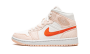 The Women’s Air Jordan 1 Mid SE “Corduroy” is a redesigned look for the women’s version of the mid-top shoe that replaces the model’s original leather design with plush corduroy. A fresh look for the summer months and beyond, the “Corduroy” updates the look of the popular Jordan 1 Mid with a soft-to-the-touch Sail-colored corduroy material on the toe, mid-panel, and collar. Orange Quartz corduroy panels contrast the look and a bright orange suede Swoosh is found on either side. Additional branding efforts include a tonal “Wings” patch on the collar and embossed Jumpman and “Air” insignias on the suede tongue tag. Sail laces sit on a corduroy tongue to round out the look.