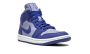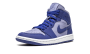 The Women’s Air Jordan 1 Mid SE “Iron Purple” is a women’s-only look for the mid-top version of Michael Jordan’s first signature shoe that was released in Summer 2021. A classic two-tone Iron Purple and Deep Royal Blue color block highlights the look of the design with purple leather appearing on the perforated toe, mid-panel, and collar. Royal Blue leather on the forefoot, eyelets, collar, heel, and Swoosh offer a darker contrast to the purple base. An embossed “Wings” logo appears on the collar and embossed Jumpman and “Air” branding is found on the Iron Purple leather tongue tag. The white rubber midsole and Iron Purple outsole complete the look.