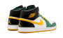 Dubbed the “Sonics” colorway due to its similarity to the team color of the Seattle Sonics, this Air Jordan 1 Mid features a green, white, yellow, and black upper for a sporty look.
