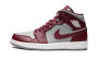 The Air Jordan 1 Mid “Team Red” is a maroon and grey colorway of the lifestyle shoe that was released in 2022. The classic, two-tone color block features a grey leather base with Team Red leather overlays and Swoosh branding. A white “Wings” logo can be found on the collar and white Jumpman and “Air” detailing appears on the Team Red tongue tag on the grey nylon tongue. A white rubber midsole and grey outsole complete the look.