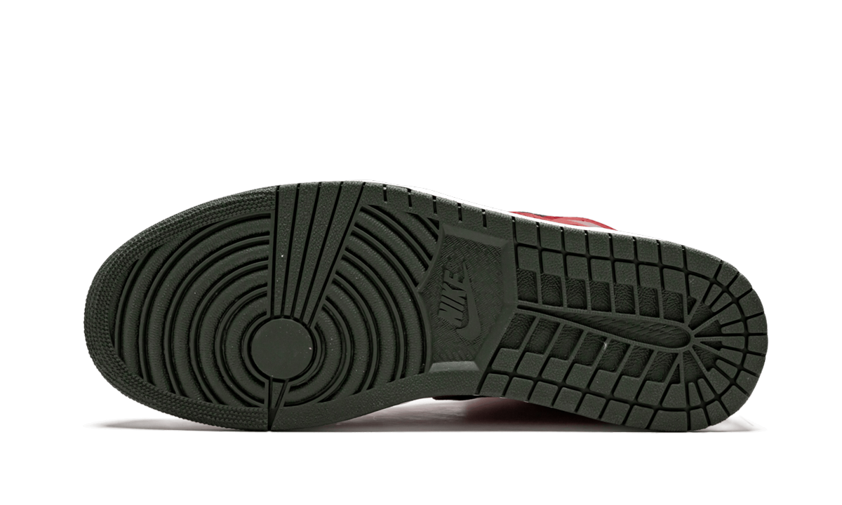 This premium edition of the Air Jordan 1 High from 2008 features the iconic silhouette in a vibrant all-red leather upper with dark green accents for the felt inner lining and Swoosh.