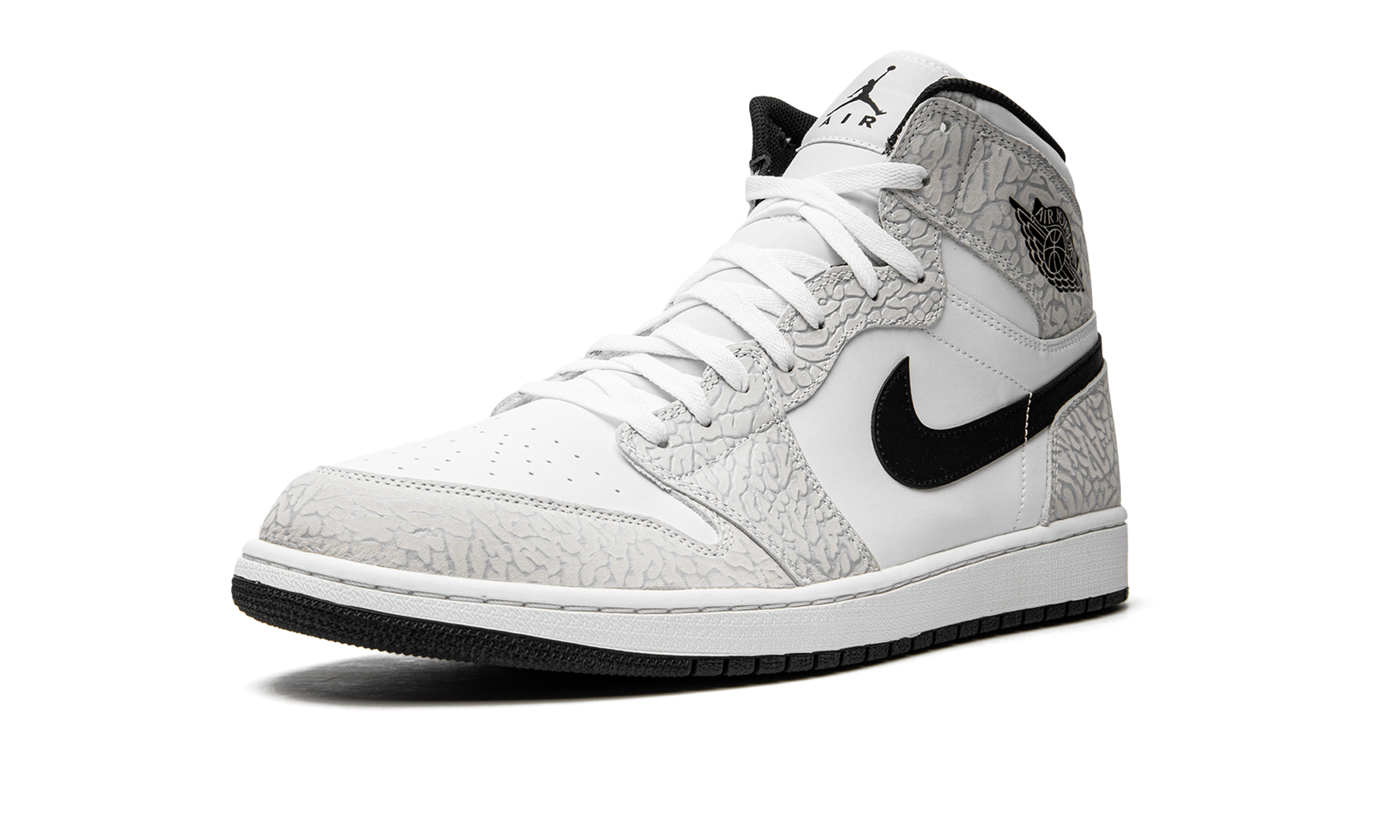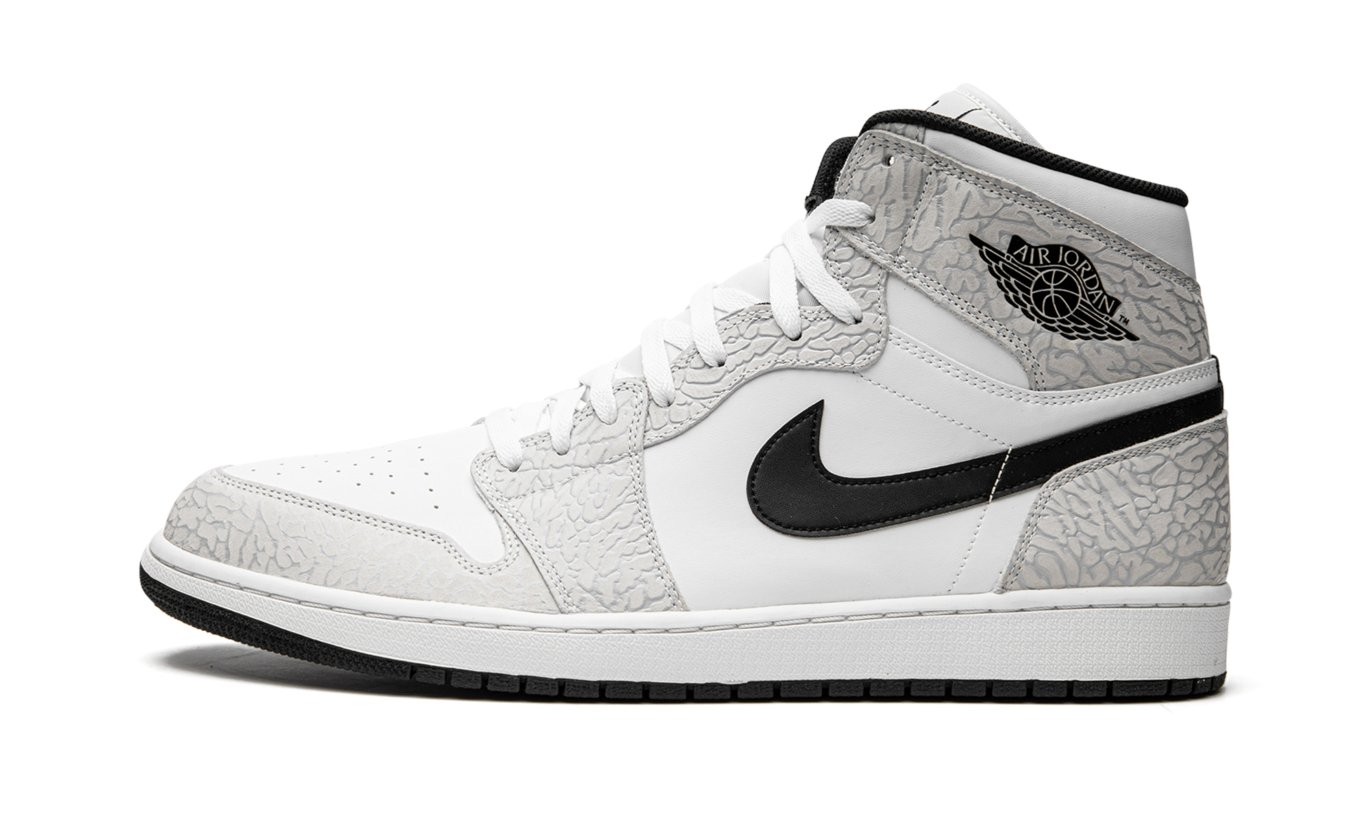 This “White Elephant” Air Jordan 1 High features the iconic silhouette in a white leather upper with matching white elephant print paneling. Black accents finish off the clean look.