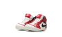 The Jordan 1 Crib “Lost & Found” is a miniature version of the original colorway of Michael Jordan’s first signature shoe for infants. The “Lost & Found” edition of the Air Jordan 1 is a vintage-inspired take on the model’s original “Chicago” colorway that was worn by Jordan during his rookie season in the NBA with the Chicago Bulls in 1984-85. Jordan Brand shrinks the “Lost & Found” down in size to fit the tiny feet of babies. The toe and mid-panel are constructed in white leather, which allows for the red leather overlays and black Swoosh branding to pop against the neutral base. A black “Wings” logo appears on the collar and a classic white Nike logo with a Swoosh is found on the red nylon tongue tag. Sans laces, the Jordan 1 Crib Bootie is an easy-wearing slip-on shoe for infants.