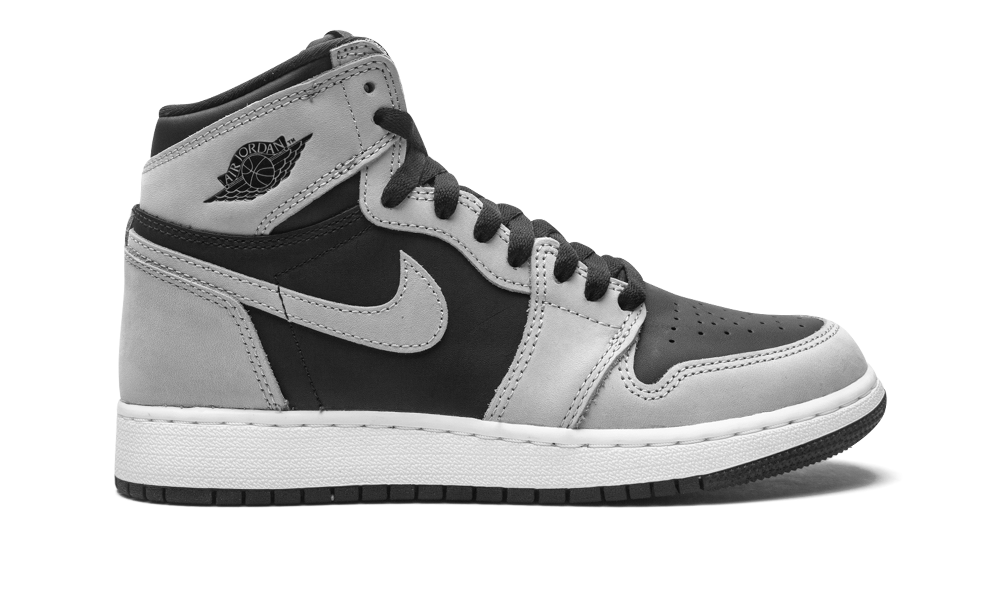 The Air Jordan 1 High “Shadow 2.0” is the youth sizing of the colorway that is inspired by the original black-and-grey “Shadow” edition of Michael Jordan’s first signature shoe. The “Shadow 2.0” is an updated edition of the versatile colorway. On the “Shadow 2.0,” black leather appears on the mid-panel and on the perforated toe. The first “Shadow” featured grey leather on the toebox. Moreover, the “Shadow 2.0” dons grey leather on the forefoot and eyelets. The “OG” “Shadow” displayed black leather on those panels. Grey leather can be found on the collar, heel, and Swoosh. A black “Wings” logo graces the collar and grey “Nike Air” on the tongue tag on the black nylon tongue. It should be noted that the grey leather panels found on the “Shadow 2.0” are lighter in color than the original grey leather on the first “Shadow.” Release date: May 15, 2021.