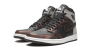 The Air Jordan 1 High OG “Patina” is a premium colorway of Michael Jordan’s first signature shoe that was released in March 2021. Several indirect influences inform the look of the “Patina,” beginning with the grey nubuck overlays on the collar and heel which, combined with the supple black leather on the collar and mid-panel, call to mind the original “Shadow” Jordan 1. The overlays on the forefoot, eyestay, and Swoosh are given an opulent bronzed patina finish that contrasts with the black leather detailing of the perforated toe. A black “Wings” logo adorns the collar and teal “Nike” insignia appears with tonal stitching on the black nylon tongue. Underfoot, a cream rubber midsole and black outsole put the finishing touches on yet another versatile colorway of the Air Jordan 1. Release date: March 10, 2021.
