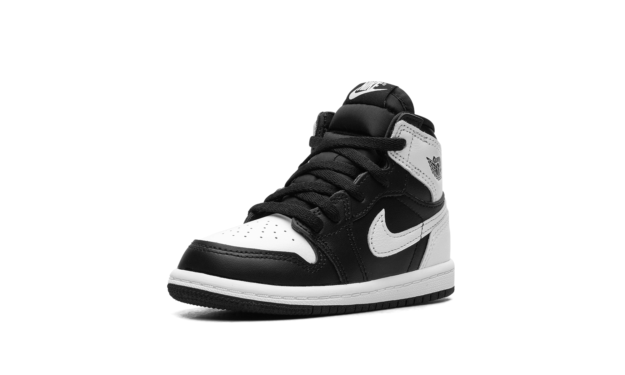 The Air Jordan 1 Retro High OG TD “Reverse Panda” is the toddler sizing of the colorway of Michael Jordan’s first signature shoe that reverses one of the model’s popular styles. The “Reverse Panda” flips the Jordan 1’s original “Black/White” colorway by reversing its two-tone color block. More specifically, the shoe has a black leather base with contrasting white leather overlays and white leather Swooshes. A black “Wings” logo can be found on the collar while classic Nike logo branding is seen on the tongue tag. The black rubber midsole is paired with a white rubber outsole.