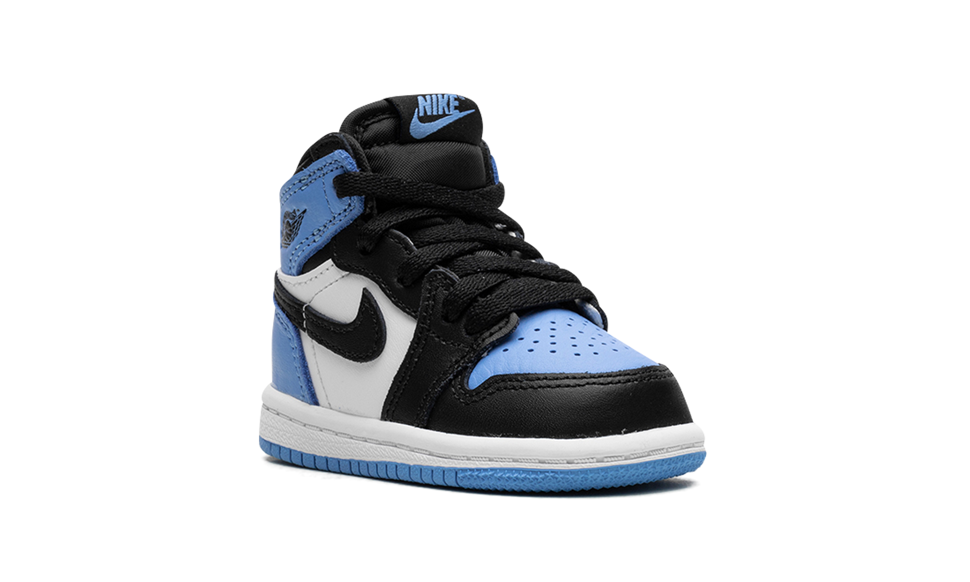 The Air Jordan 1 Retro High OG TD “UNC Toe” is the toddler sizing of the first Air Jordan shoe in a colorway inspired by the model’s original “UNC” and “Black Toe” styles. On the “UNC Toe,” the Jordan 1 features a University Blue leather perforated toe that’s contrasted with black leather overlays on the toe cap, forefoot, and eyelets. The “UNC Toe” also includes white leather on the mid-panel and University Blue leather on the collar and heel. A black leather Swoosh and black “Wings” logo can be found on the mid-panel and collar, respectively. The University Blue accenting is a nod to Michael Jordan’s alma mater, the University of North Carolina, as well as the Jordan 1’s original “UNC” colorway. Release date: July 22, 2023