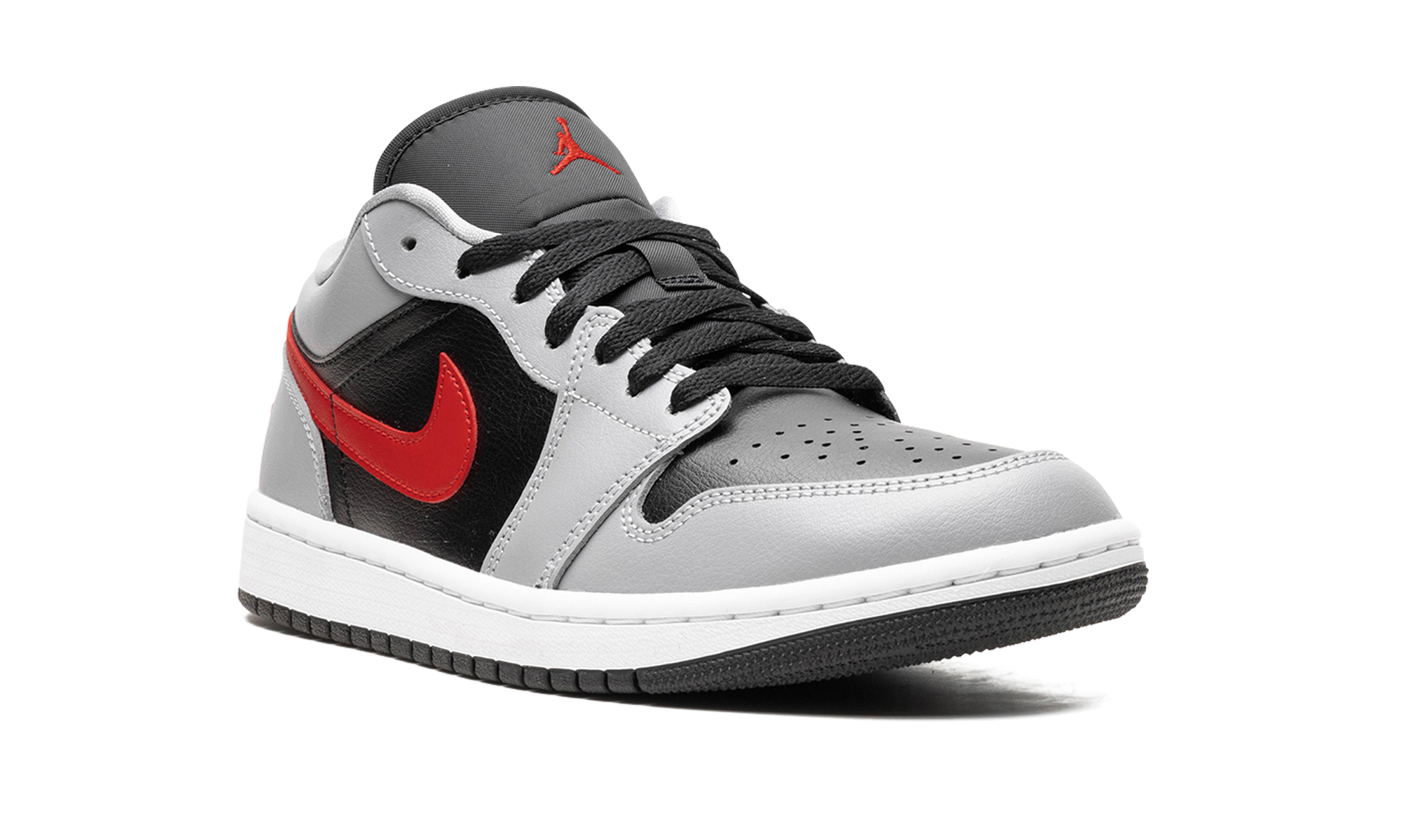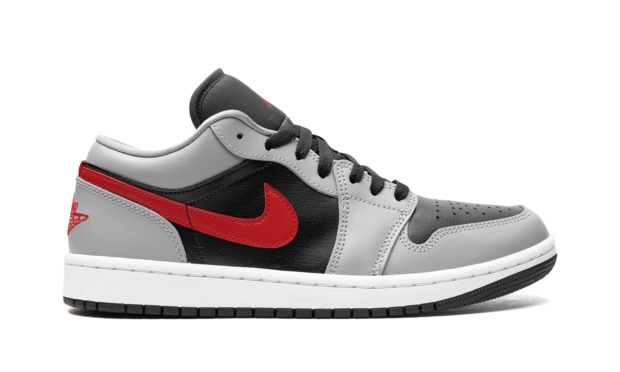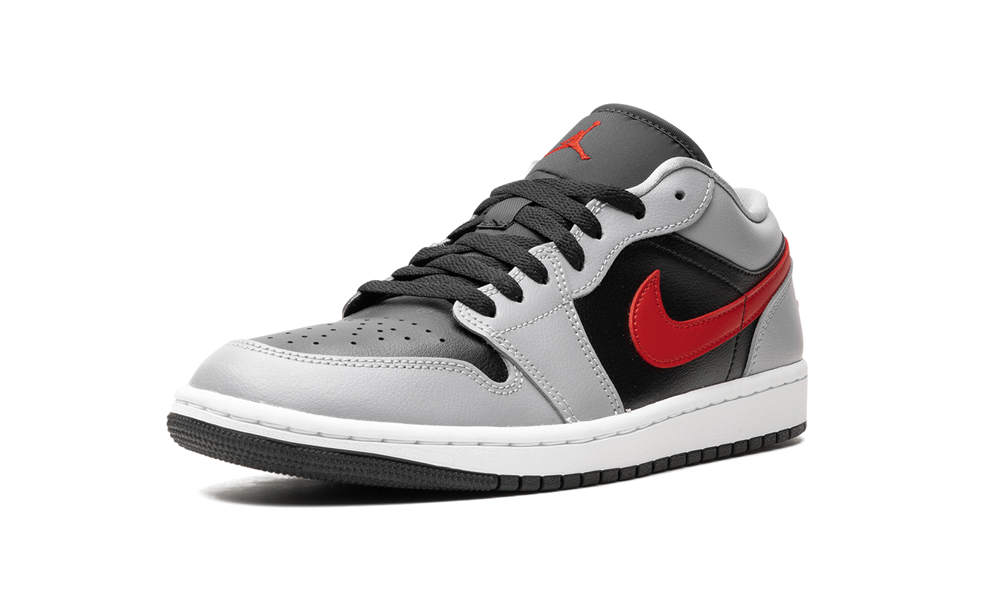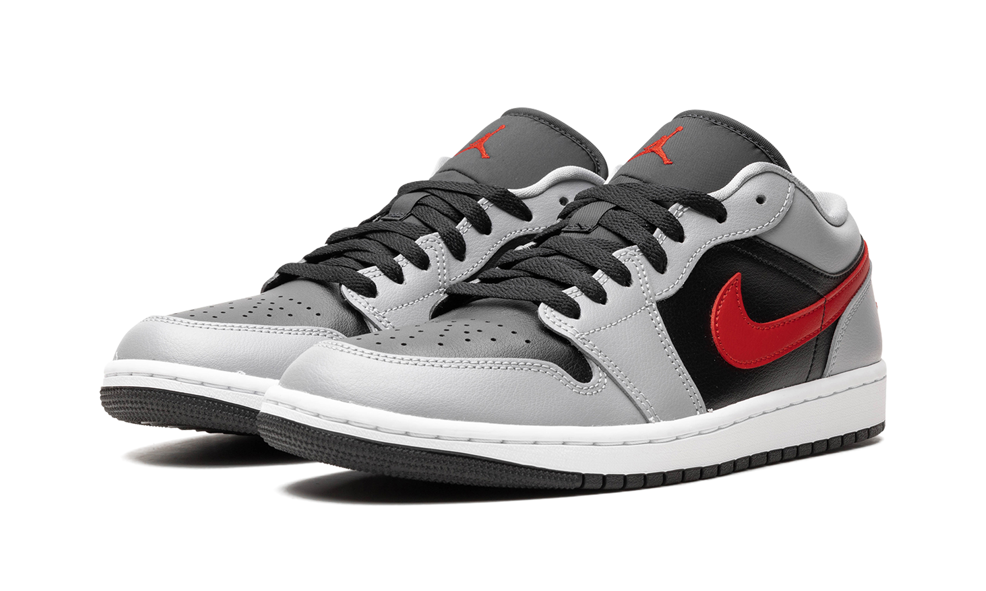 The Women’s Air Jordan 1 Low “Cement Fire Red” is a women’s-exclusive colorway of the classic sneaker with a Chicago Bulls-inspired look. While not associated with the Bulls, the “Cement Fire Red” nonetheless has the basketball team’s uniform colors on its design as a nod to the Jordan 1’s history with Michael Jordan and the Bulls. The upper features a black leather base and Cement Grey leather overlays. A Fire Red leather Swoosh appears on the sides, while a red “Wings” logo is embroidered on the heel. Classic Jumpman detailing is found on the tongue. A white midsole and black outsole complete the look.