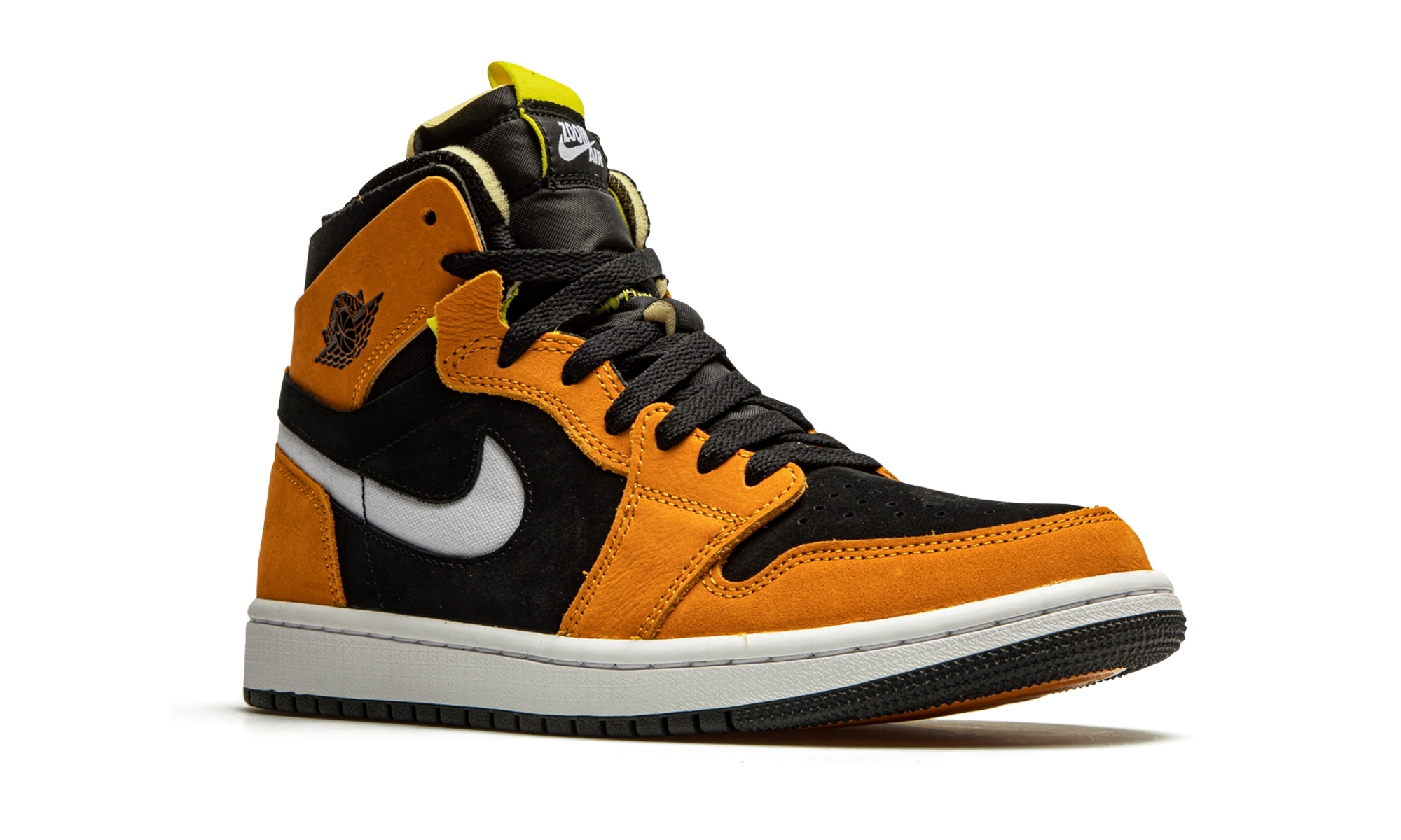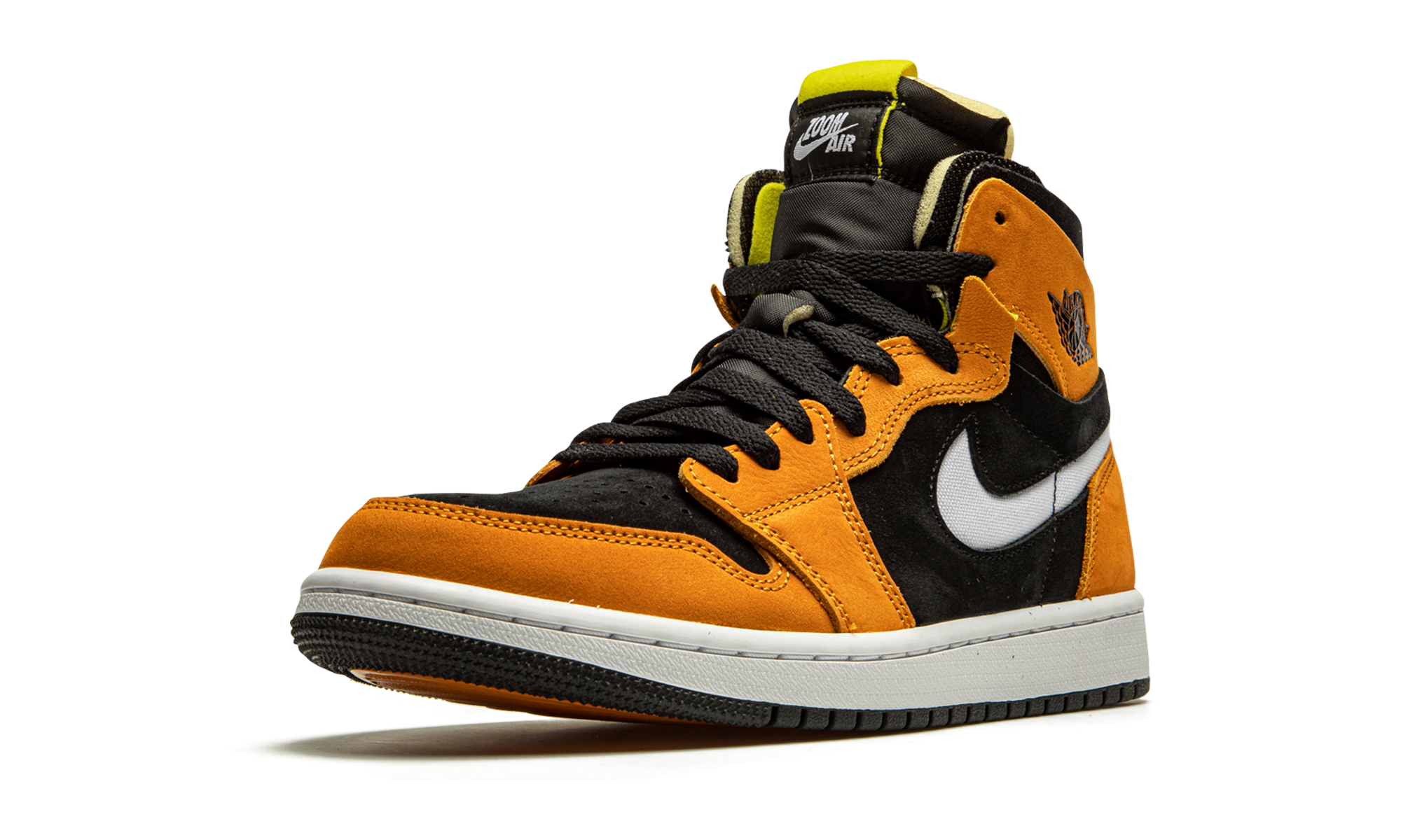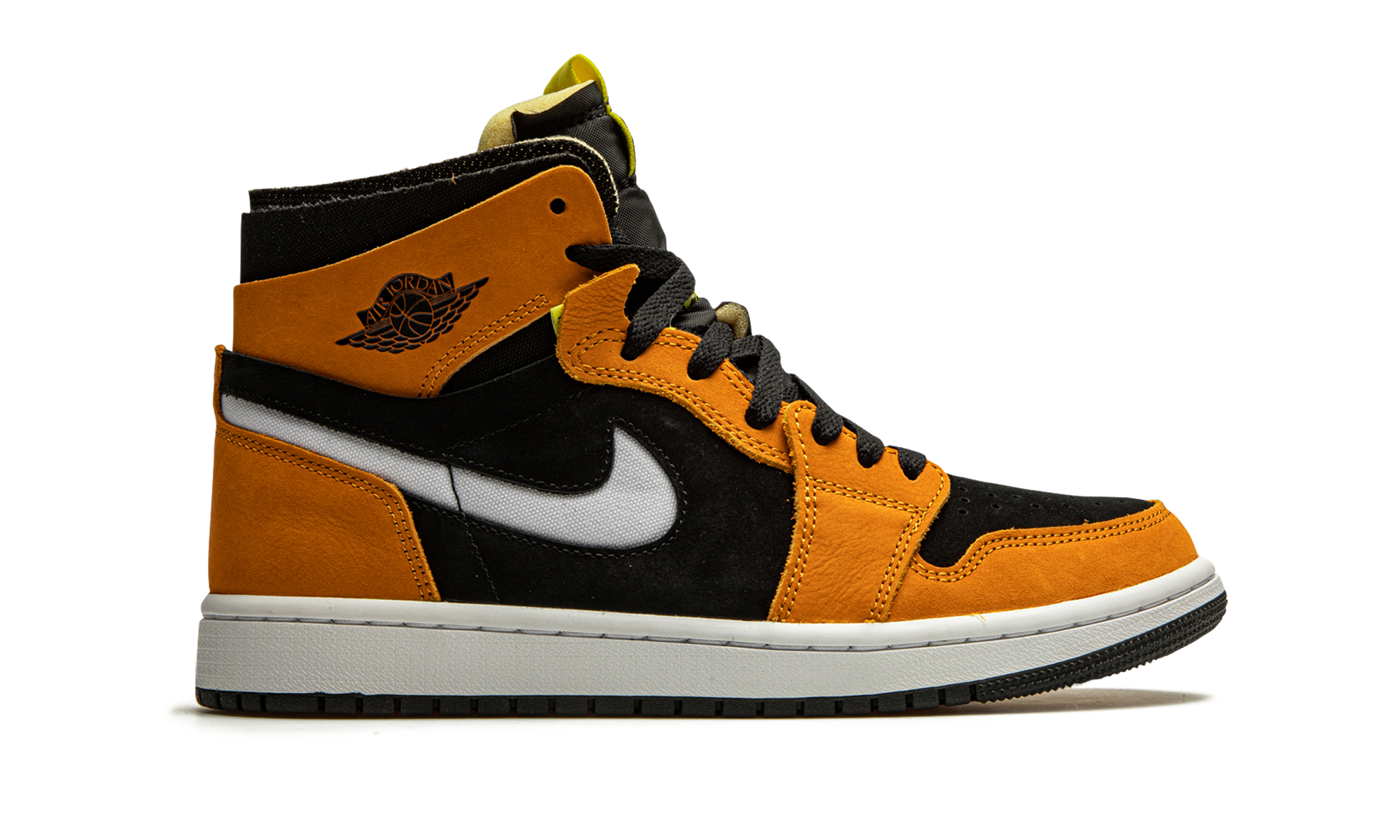 The Air Jordan 1 High Zoom CMFT “Black/Monarch” is a contemporary spin on Michael Jordan’s first signature shoe. Jordan Brand introduced the Jordan 1 High Zoom CMFT in 2020 as a progression from the iconic original silhouette. The deconstructed style is influenced by the popular Off-White x Air Jordan 1 from 2017. Moreover, the Zoom CMFT features even more padding around the collar. As for this colorway, burnt orange suede overlays appear on the forefoot, eyelets, collar, and heel. A white Swoosh can be found on both sides and a black “Wings” logo resides on the collar. Black suede forms the base of the shoe, appearing on the perforated toe and on the mid-panel and collar. The midsole is supplied with Zoom Air cushioning, a replacement for the standard Air unit found in the original Jordan 1 High OG model. Release date: March 2, 2021.