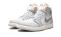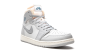 The Air Jordan 1 Zoom CMFT “London” is a steely colorway of Michael Jordan’s first signature shoe that was released exclusively in the United Kingdom. The Jordan 1 Zoom CMFT is an alternate version of the iconic high-top retro basketball shoe with upgraded Zoom Air technology embedded in its midsole. Other modifications such as exposed foam padding on the tongue and mesh on the collar differentiate the model from its Jordan 1 relatives. As for the design of the “London,” the color block is influenced by the city’s moody, grey, overcast weather. Light Smoke Grey leather overlays appear on the forefoot, eyelets, collar, and heel. White tumbled leather forms the base. A dotted grey tumbled leather Swoosh can be found on either side and a blue “Wings” logo is located on the collar. A “Zoom Air” insignia is printed on the patch stitched onto the light pink mesh tongue, replacing the standard “Air” detailing found on the original Jordan 1 model. As previously mentioned, Zoom Air technology is encased within the vintage inspired cream midsole for all-day comfort. The Air Jordan 1 Zoom CMFT “London” was released exclusively in the United Kingdom in 2021.