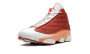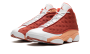 The Air Jordan 13 “Dune Red” is a colorway of the retro basketball shoe inspired by Mars exploration. The Jordan 13 in the “Dune Red” style is complete with a Dune Red and Terra Blush suede color combination on its dotted upper and mudguard. The toe and tongue are constructed in white leather to match the color of the midsole walls. The colorway retains the Jordan 13’s original panther eye-inspired holographic emblem on the collar. A classic Jumpman appears on the white leather tongue. A “Jordan” tab is seen on the vamp. Release date: Summer 2024