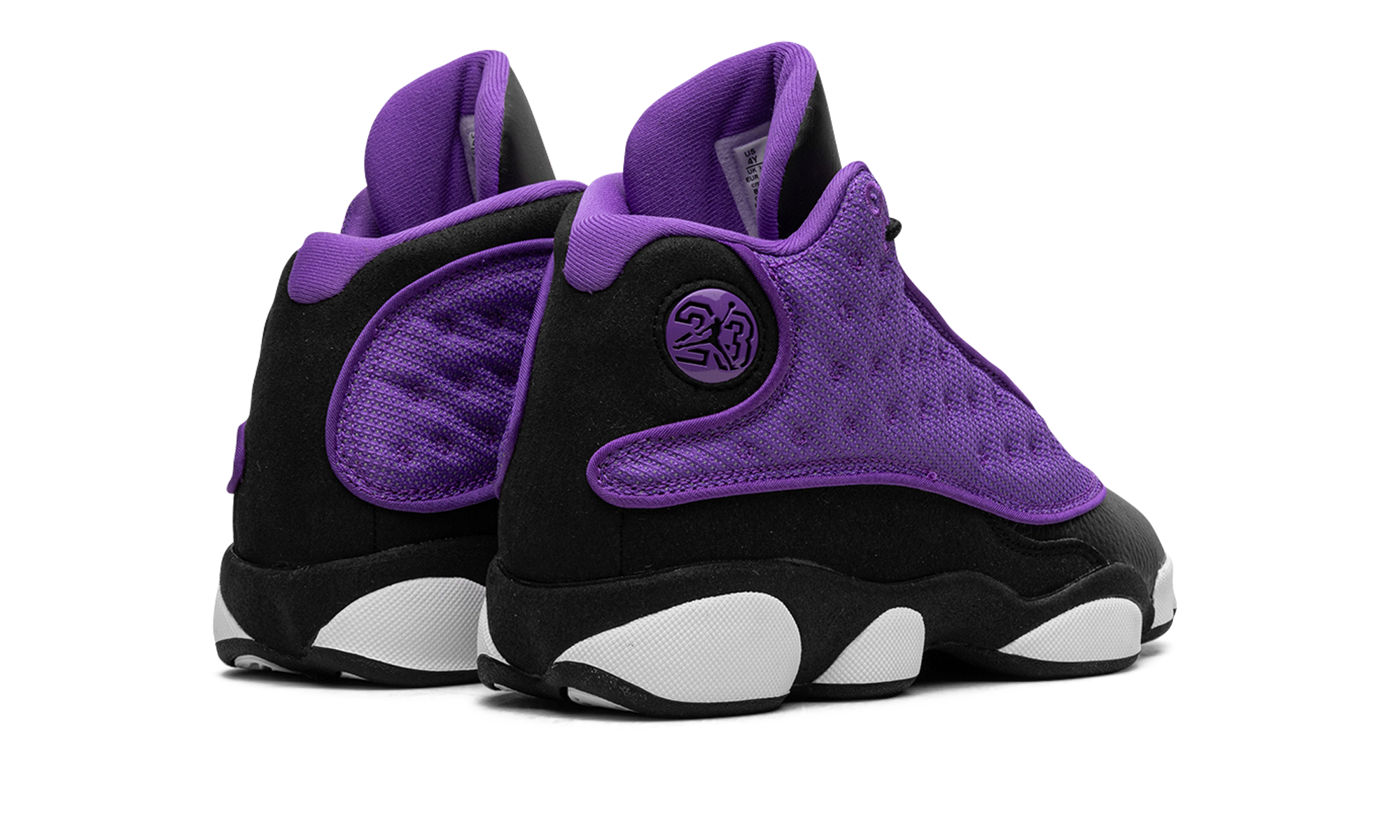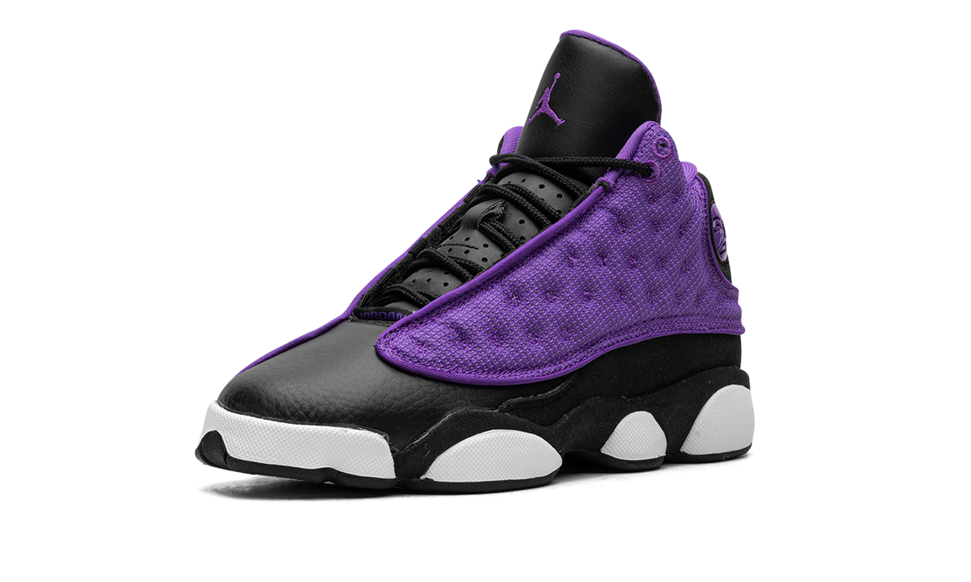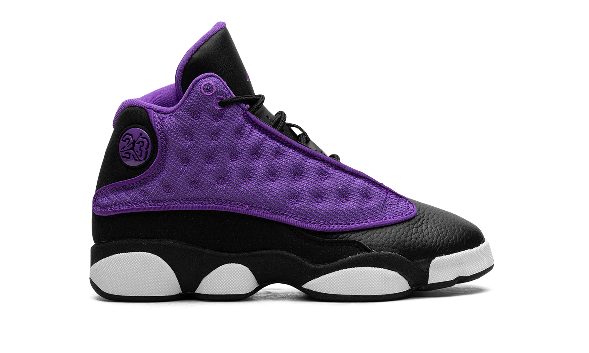 The Air Jordan 13 GS “Purple Venom” is the youth sizing of the retro basketball shoe with an eye-catching purple design. Michael Jordan’s thirteenth signature shoe receives a bold makeover on the “Purple Venom” as the bright shade of purple appears on the dotted mesh panel on the upper. Black leather forms the base of the shoe. The Jordan 13’s usual holographic panther eye emblem on the lateral side of the ankle is replaced with a molded plastic “23” logo. A purple Jumpman is embroidered on the black leather tongue. Underfoot, white midsole walls complete the look. Release date: October 2, 2023