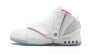 Boasting a “South Beach” theme, the Solefly x Air Jordan 16 Retro released in 2016. If features an completely white leather upper with ostrich leather on the removable shroud (which is reversible and can be worn on the Pink Flash side as well). Neon pink and turquoise accents complete the shoe.
