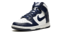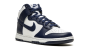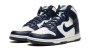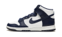 The Nike Dunk High “Championship Navy,” also known as the “Midnight Navy,” is a two-tone, navy-and-white colorway of the vintage basketball shoe that salutes the Villanova Wildcats. An original style of the Dunk from the college basketball-inspired “Be True to Your School” collection from 1985, the “Championship Navy” appears in the team uniform colors of the Wildcats, and is a classic Dunk release. The upper features white leather on the perforated toe, mid-panel, collar, and heel. Contrasting navy blue leather is found on the overlays and Swoosh. The “Nike” and Swoosh branding on the nylon tongue appear in Championship Navy, as does the laces layered over the white nylon tongue and the rubber outsole underneath the white midsole. Release date: October 8, 2021