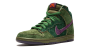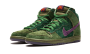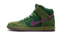 The Nike SB Dunk High “Skunk” is a premium release that kicked off the brand’s annual 4/20 releases in 2010. An ode to high times and hazy summer days, the Todd Bratrud-designed Nike SB Dunk “Skunk” features different hues of green grass-like hairy suede panels covering its upper. Bright green laces offer a contrasting touch against the tonal suede upper and burnt-out grass-colored tongue. Orange Nike SB branding appears on the purple tongue tab as well as on the mid-panel in the form of a fuzzy purple suede Swoosh. A concealed stash pocket can be found on the inner side of the tongue with a cartoon graphic of a dazed skunk on the purple insole. The Nike SB Dunk High “Skunk” was released on April 20th, 2010.