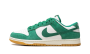 The Nike Dunk Low SE ‘Malachite Gum’ combines a chalk white leather base with green suede overlays at the forefoot and heel.